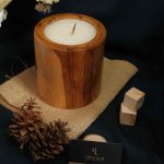 The candle is in the form of a long vessel with 3 wooden wicks. with wooden case and glossy finish.