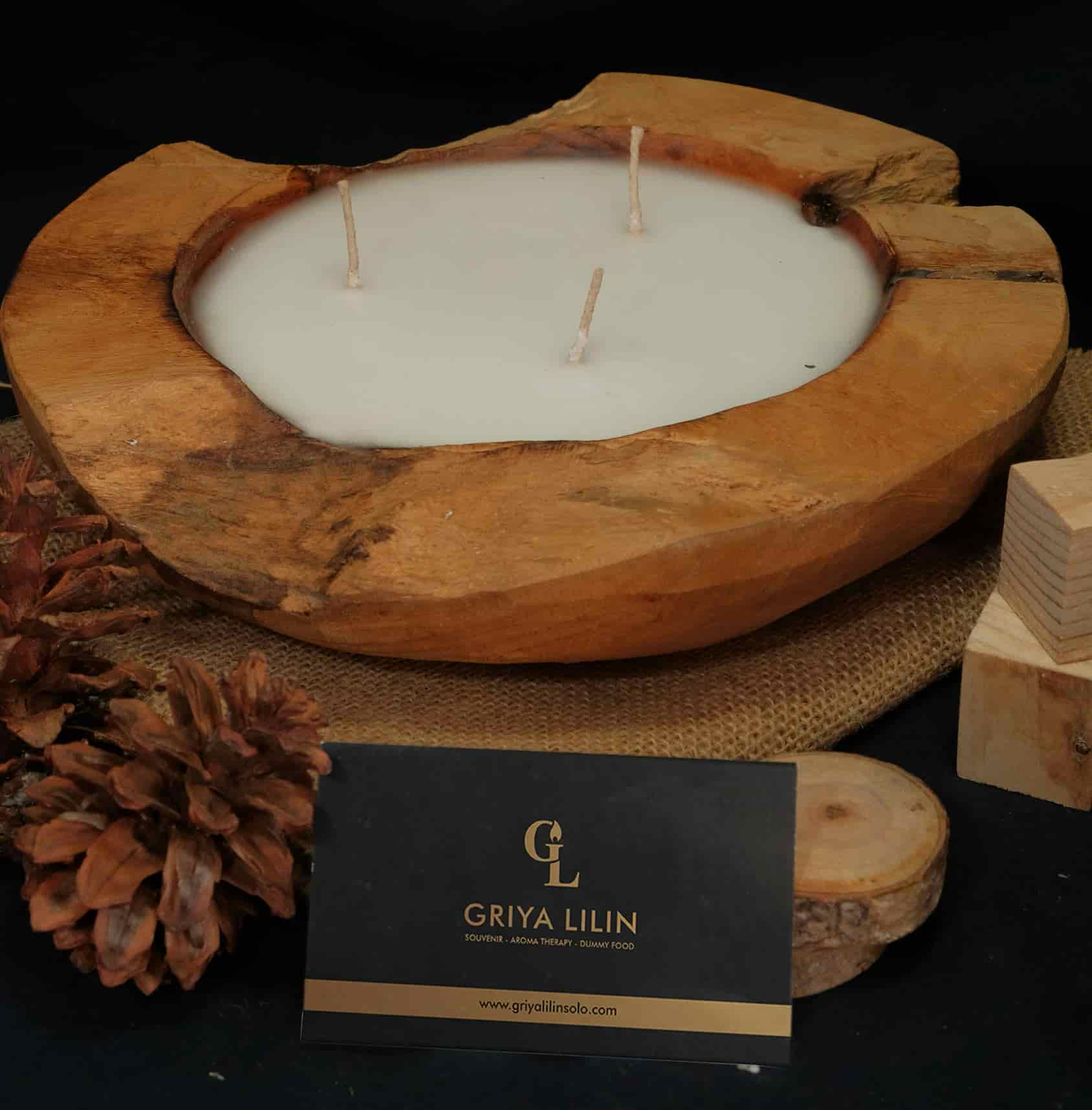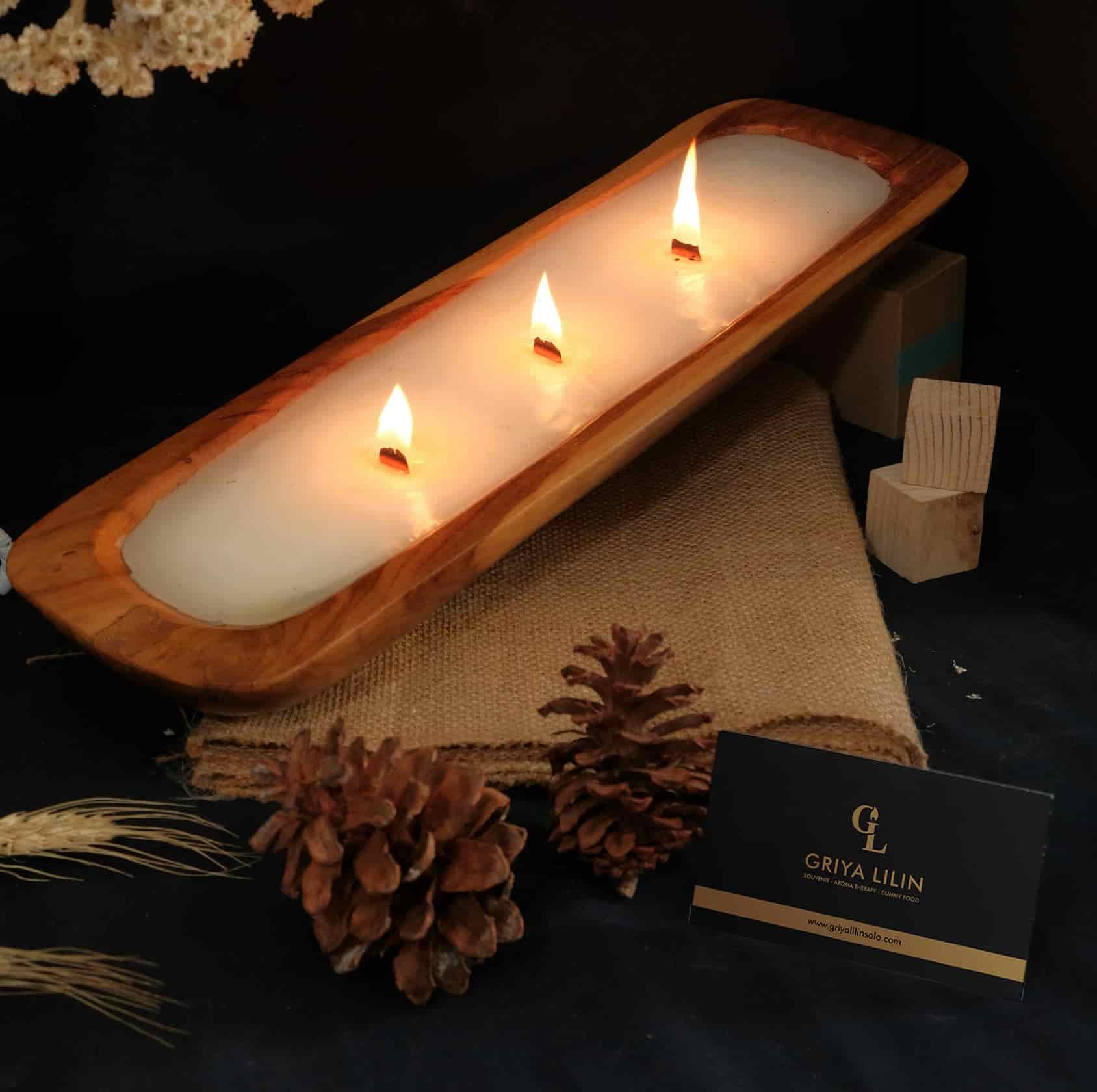 Lilin berbentuk mangkuk memiliki ukiran alami dengan penyelesaian alami.